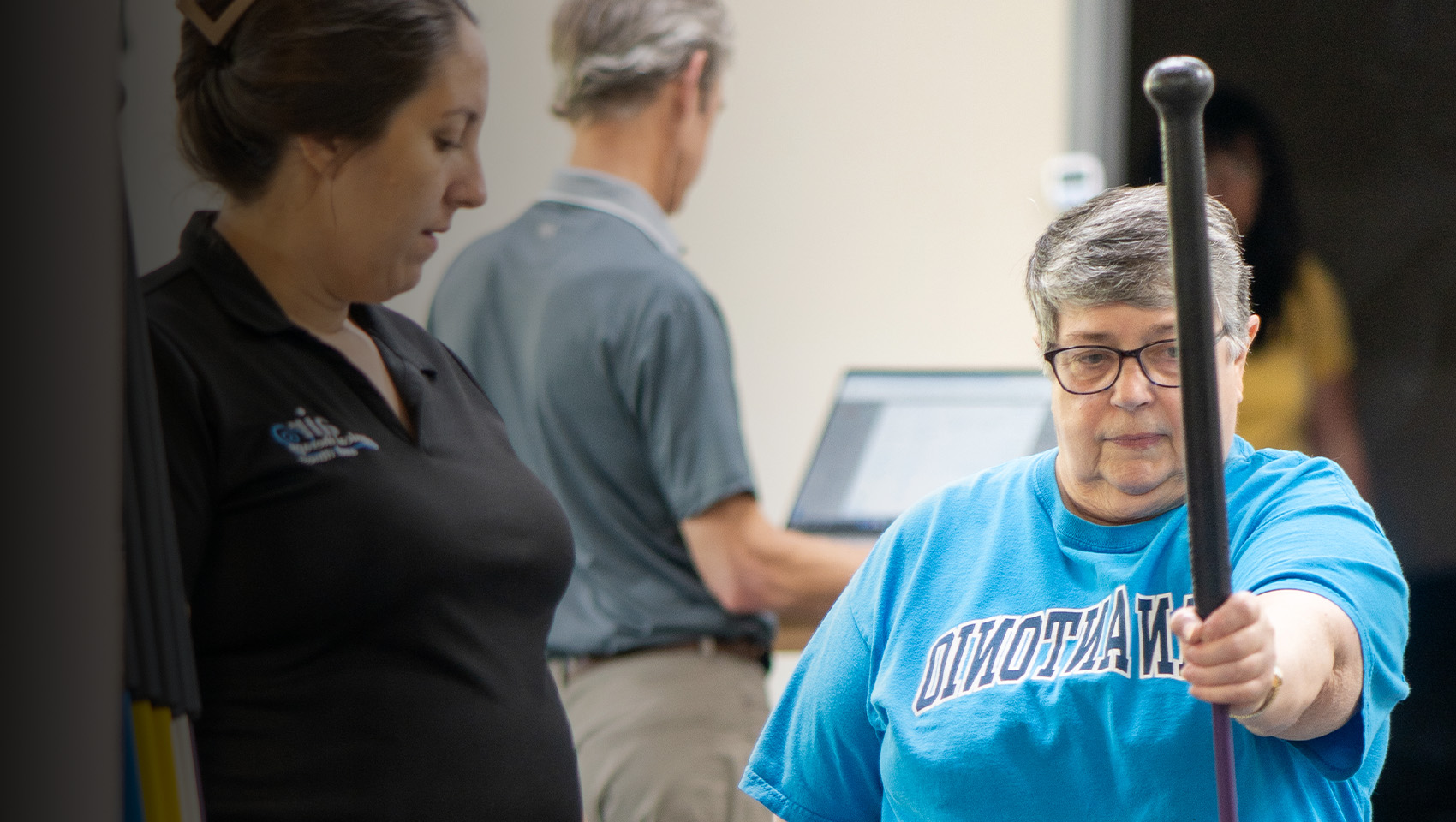 LSVT BIG trains people with Parkinson disease (PD) to use their body more normally. People living with PD or other neurological conditions often move differently, with gestures and actions that become smaller and slower. They may have trouble with getting around, getting dressed and with other activities of daily living. LSVT BIG effectively trains improved movements for any activity, whether “small motor” tasks like buttoning a shirt or “large motor” tasks like getting up from sofa or chair or maintaining balance while walking. The treatment improves walking, self-care and other tasks by helping people “recalibrate” how they perceive their movements with what others actually see. It also teaches them how and when to apply extra effort to produce bigger motions – more like the movements of everyone around them.